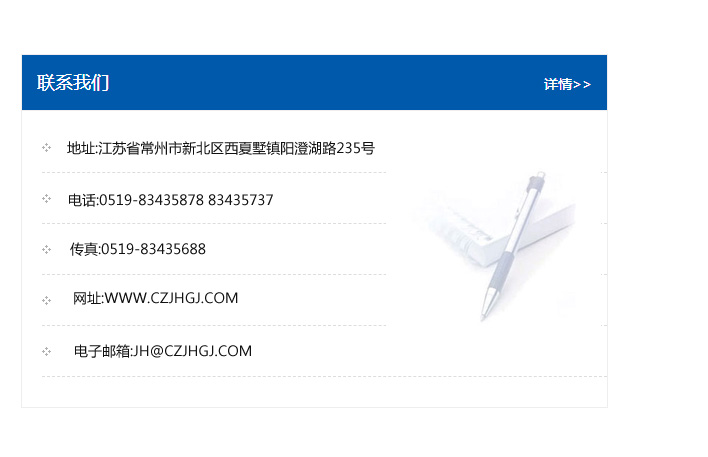 傳真:0519-83435688    郵編:213135    網址:WWW.czjhgj_com.gftbxgxs.com    電子郵箱:JH@czjhgj_com.gftbxgxs.com